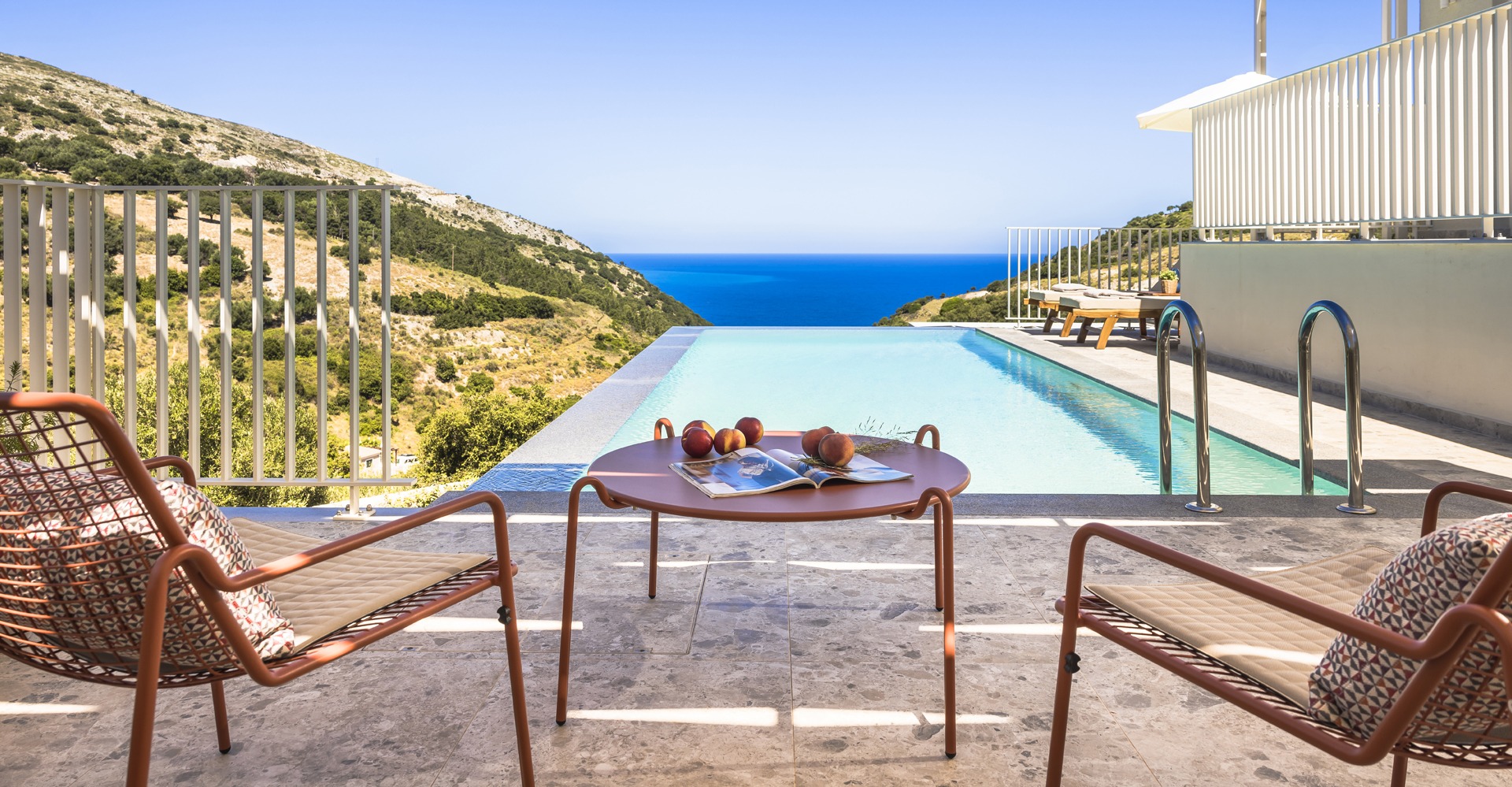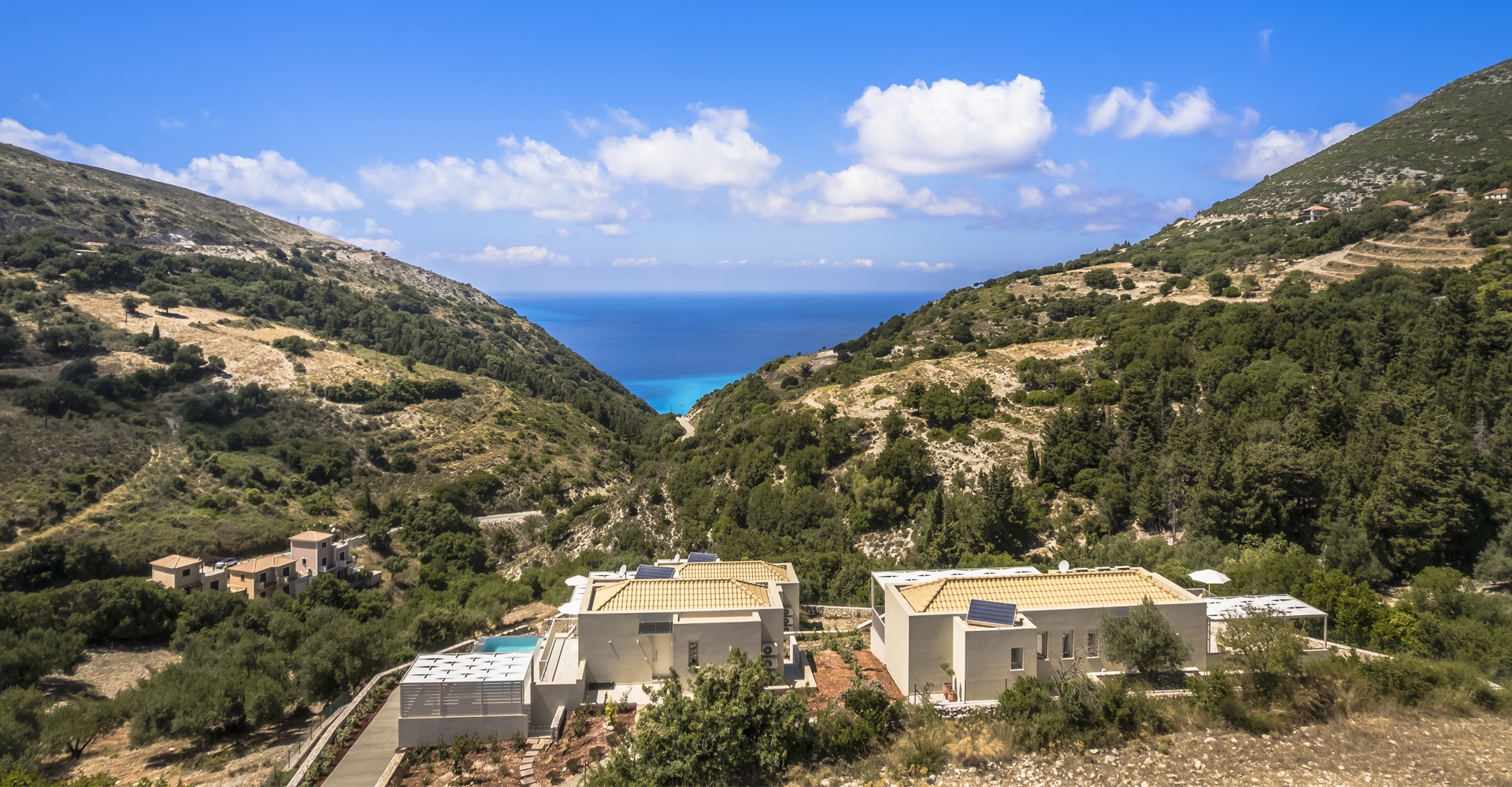 A beautiful, brand new complex of three villas, situated in the idyllic landscape above the famous Myrtos beach, is the perfect choice for you! Nestled among the island’s dry rugged landscape, these villas offer friends and family a holiday to remember surrounded by lush green countryside.